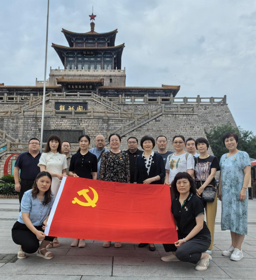 全体党员首先到济南解放阁,在阁楼东侧的“解放济南战役烈士纪念碑”前,举起右手庄严宣誓,重温入党誓词,坚定理想信念,不忘入党初心,牢记党员使命。