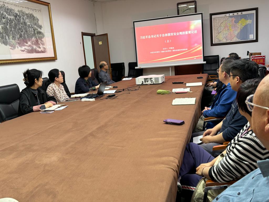 全体教职工集体收看了中共中央党校(国家行政学院)国际战略研究院教授罗建波主讲的《习近平总书记关于总体国家安全观的重要论述》的视频课程,系统深入地学习了总体国家安全观战略思想的提出背景、主要内容、核心要义、实施方略等丰富内涵,进一步认识到:习近平总书记的重要论述具有划时代的战略意义,不仅用“五大要素”和“五对关系”揭示了总体国家安全观的原理和方法,而且为维护国家安全提供了强大的思想理论武器。