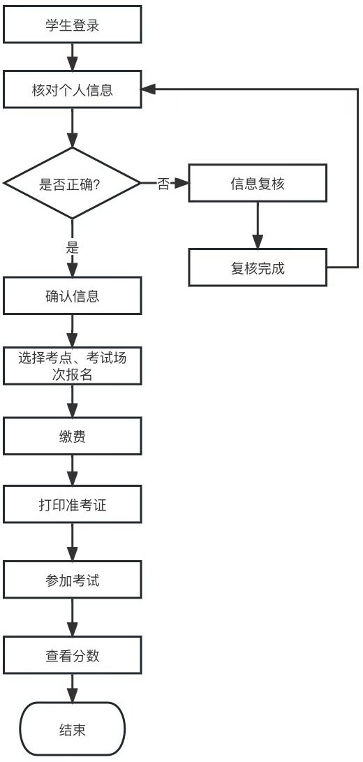 3.考生初次登录报名系统时,系统将自动显示考生的个人信息,考生应反复核对姓名、身份证号码等信息,确认无误后方可报名,否则将导致考试成绩无效。因考生本人错报、漏报造成无法参加考试或者考试成绩无效,由考生本人负责。