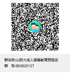 (一)考生可加入“山财大成人高等教育预报名”QQ群进行咨询,群号:983820127,也可扫下面的二维码加群。