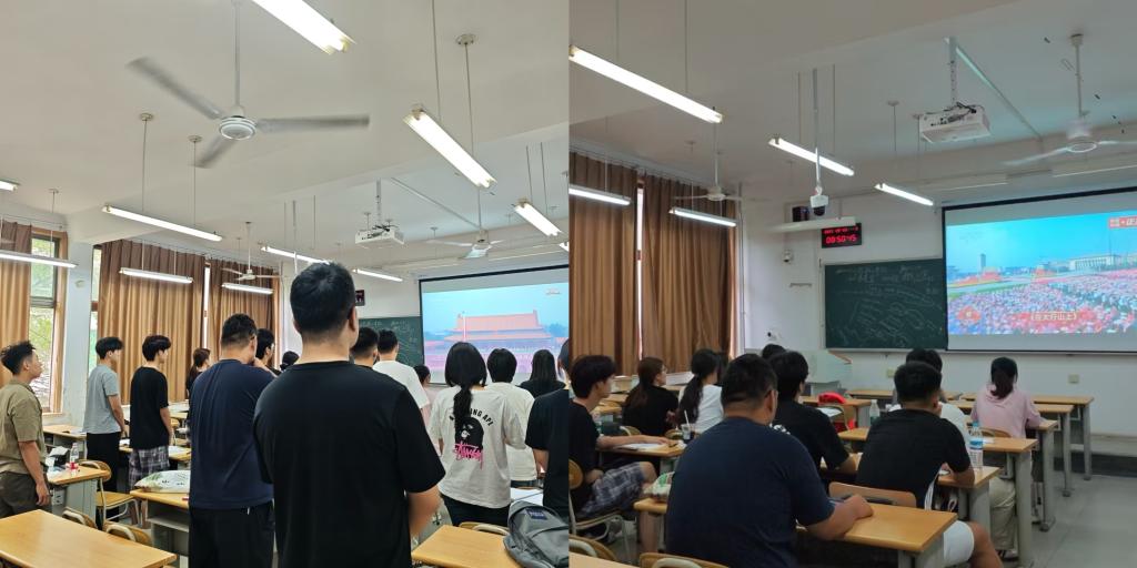 9月3日上午,学院组织全体同学观看纪念中国人民抗日战争暨世界反法西斯战争胜利80周年阅兵式。这是一场令人心潮澎湃、热血沸腾的盛典。国歌响起,教室中的同学们全体起立。当习近平总书记发表重要讲话并检阅部队时,那铿锵有力的话语,深刻阐释了伟大抗战精神的历史意义与时代价值,鲜明表达了中国人民铭记历史、缅怀先烈、珍爱和平、开创未来的坚定决心。看着整齐的方阵、先进的装备、昂扬的士气,同学们内心的震撼无法言表。那一支支威武之师,充分展现了国威军威,生动彰显了我国日益强大的综合国力和国防实力。